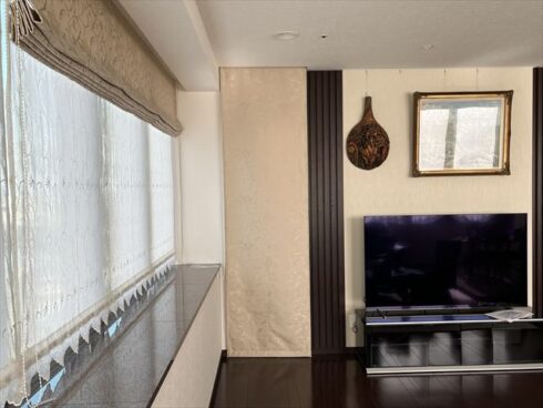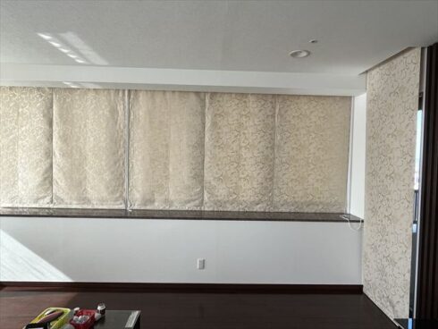 タワーマンションの大開口コーナー窓にツインシェードを施工